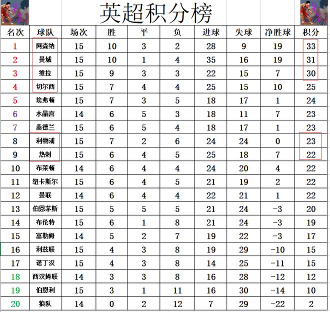积分榜方面,阿森纳近3轮只赢了1场,曼城抓住机会连追了5分,现在曼城已经将分差缩小到只剩2分,看来阿森纳的冠军又要悬了。切尔西继续掉链子,他们也被维拉拉大了分差,已经落后维拉5分,离前3越来越远。维拉击败阿森纳后,也只差阿森纳3分了,也看到了登顶的希望。利物浦本赛季估计再难硬起来了,今天2球领先的情况下,最后惨遭利兹联压哨绝平,目前暂时排在第8,落后榜首10分。